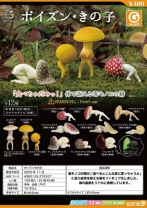 | ラインナップ | ・ベニテングタケ子[幼菌]<錯乱> ・ベニテングタケ子<錯乱> ・オオワライタケ子<錯乱> ・オニタケ子<腹痛> ・コガネタケ子<腹痛> ・コガネタケ子[幼菌]<腹痛> ・フクロツルタケ子<瀕死の重体> ・タマゴテングタケ子<瀕死の重体> ・タマゴテングタケ子[幼菌]<瀕死の重体> ・テングタケダマシ子<重度の腹痛> ・テングタケダマシ子[幼菌]<重度の腹痛> ・ツキヨタケ子<重度の腹痛> ※オニタケ子、コガネタケ子、コガネタケ子[幼菌]は 台座が付属します。 |