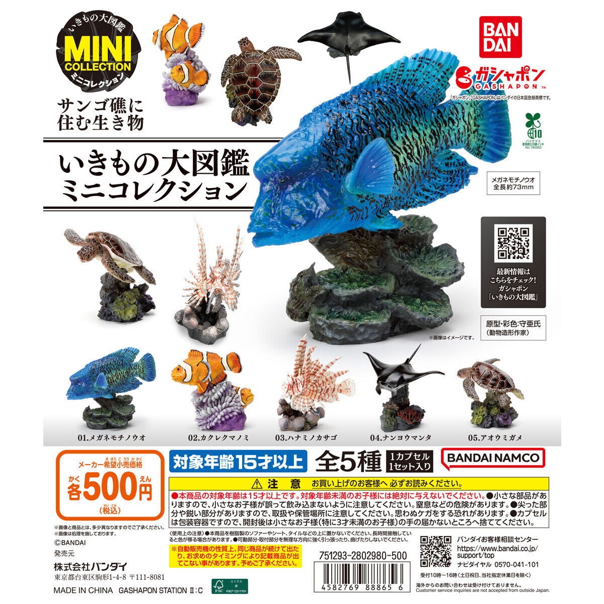 いきもの大図鑑ミニコレクション サンゴ礁に住む生き物は、バンダイのガシャポンから出されています。