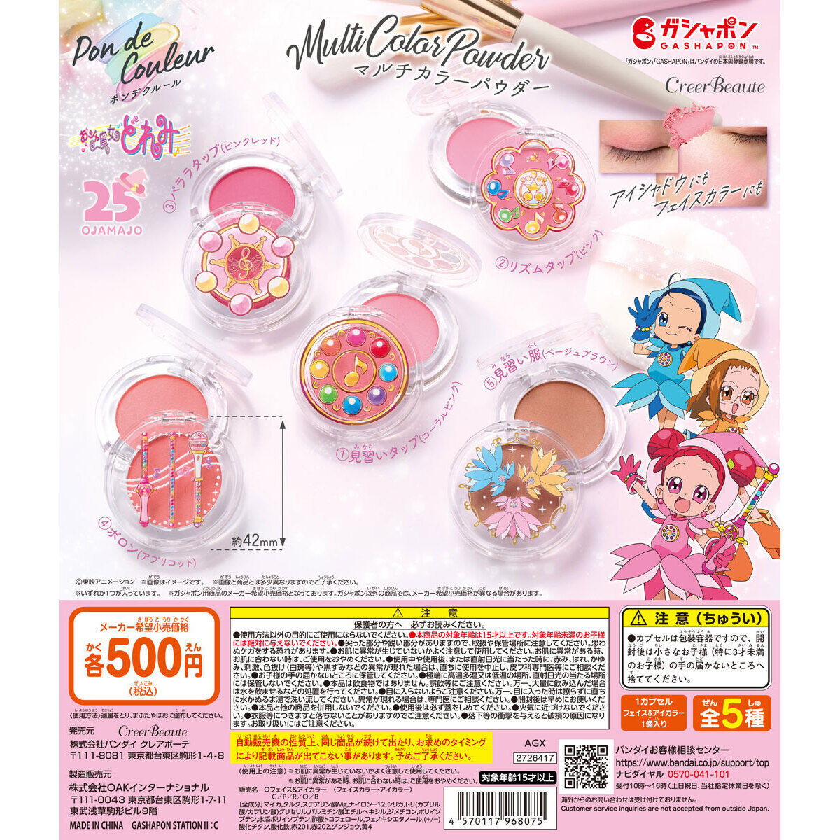 ポンデクルール おジャ魔女どれみ マルチカラーパウダーは、バンダイのプレミアムガシャポンから出されています。