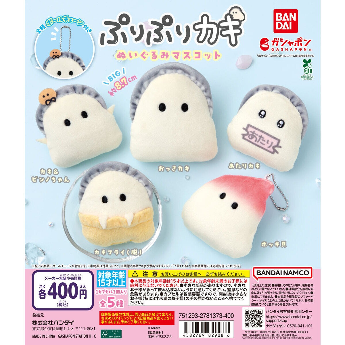 「ぷりぷりカキ」がもちもちとした触り心地がクセになるぬいぐるみになって登場!全種ボールチェーン付きです。