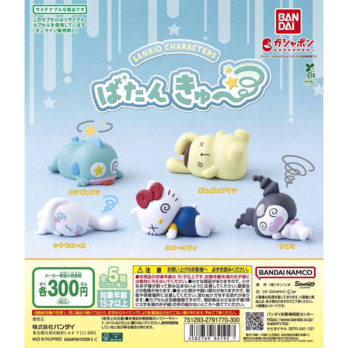 サンリオキャラクターズ ばたんきゅ~は、バンダイのガシャポンから出されています。