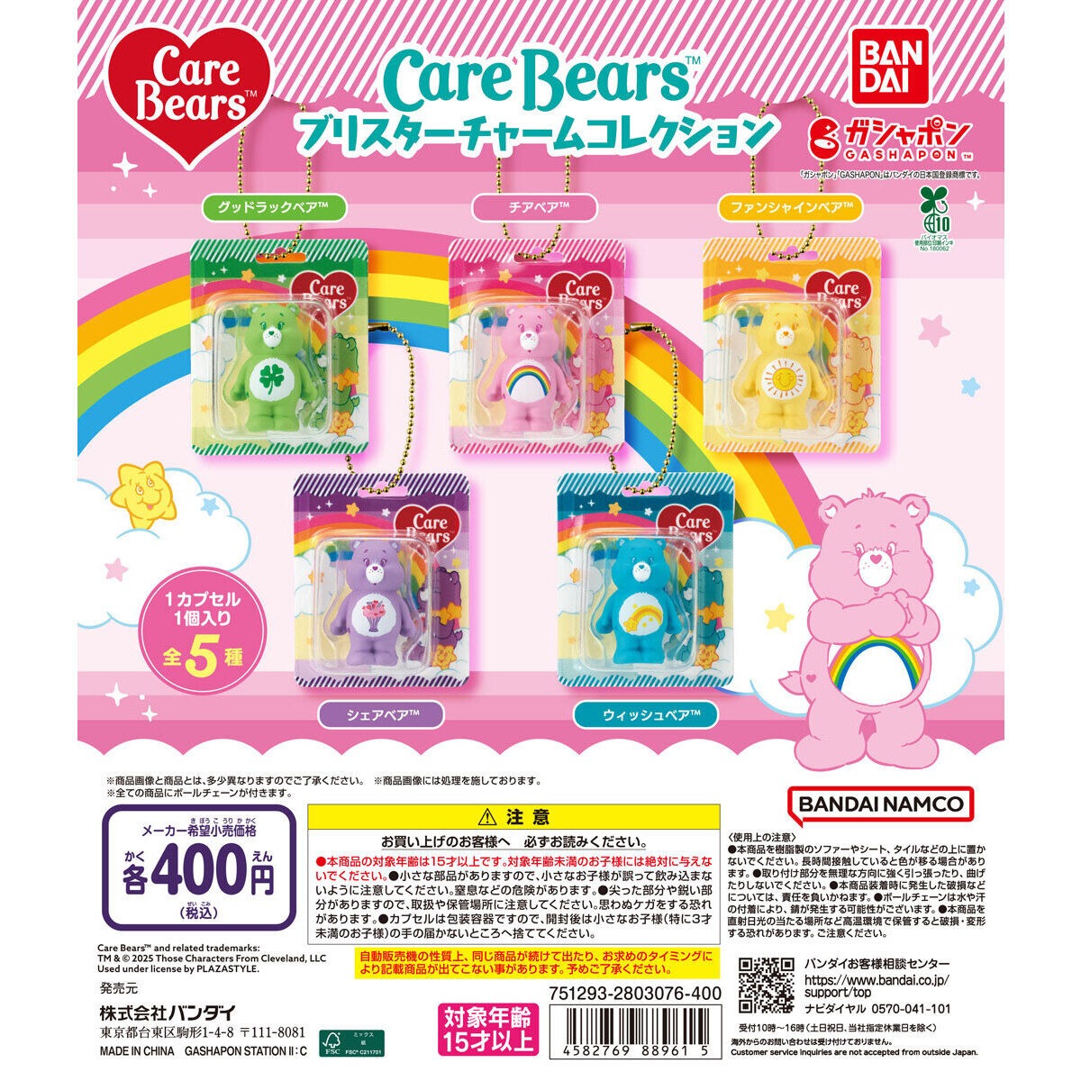ケアベア™ ブリスターチャームコレクションは、バンダイのガシャポンから出されています。