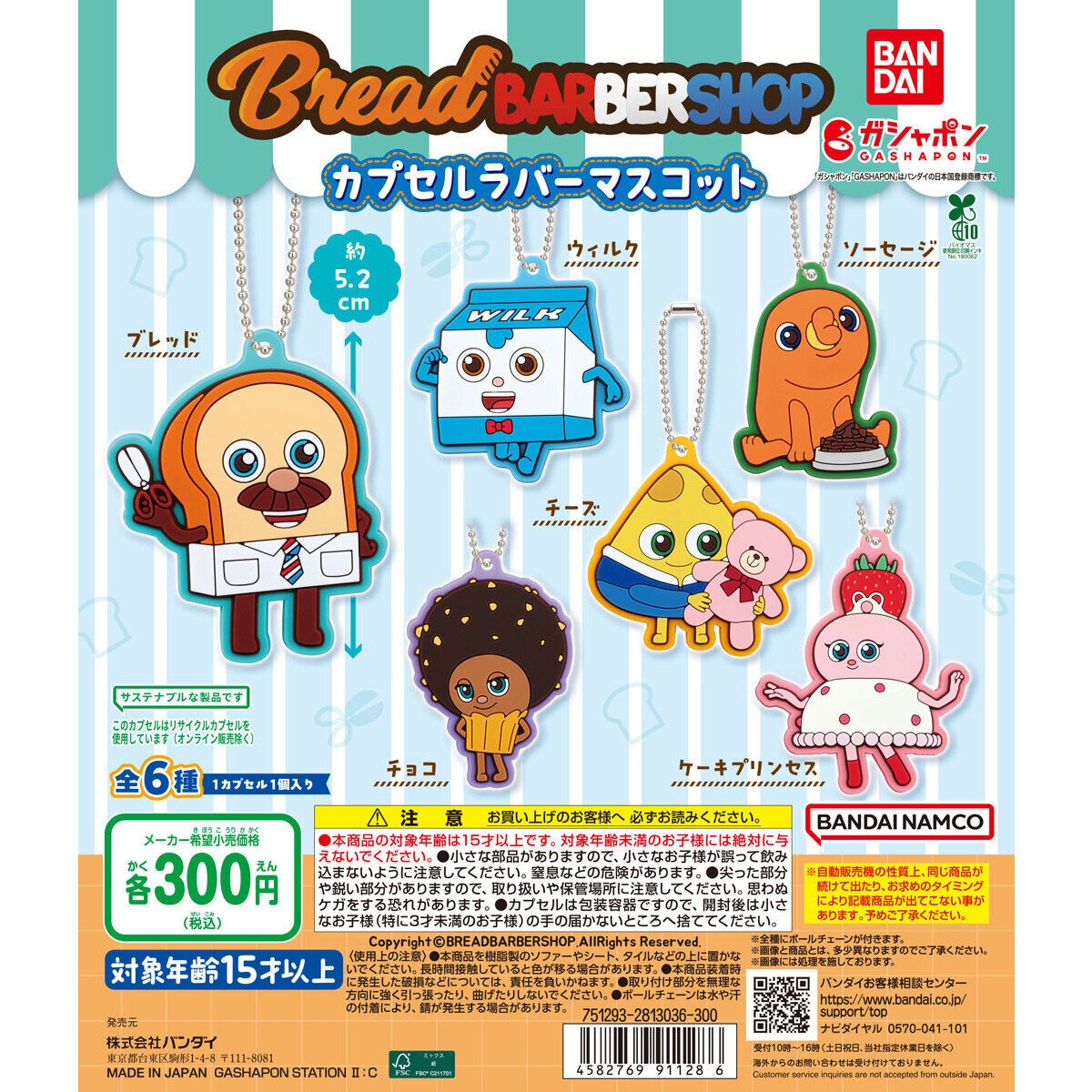 ブレッドバーバーショップ カプセルラバーマスコットは、バンダイのガシャポンから出されています。