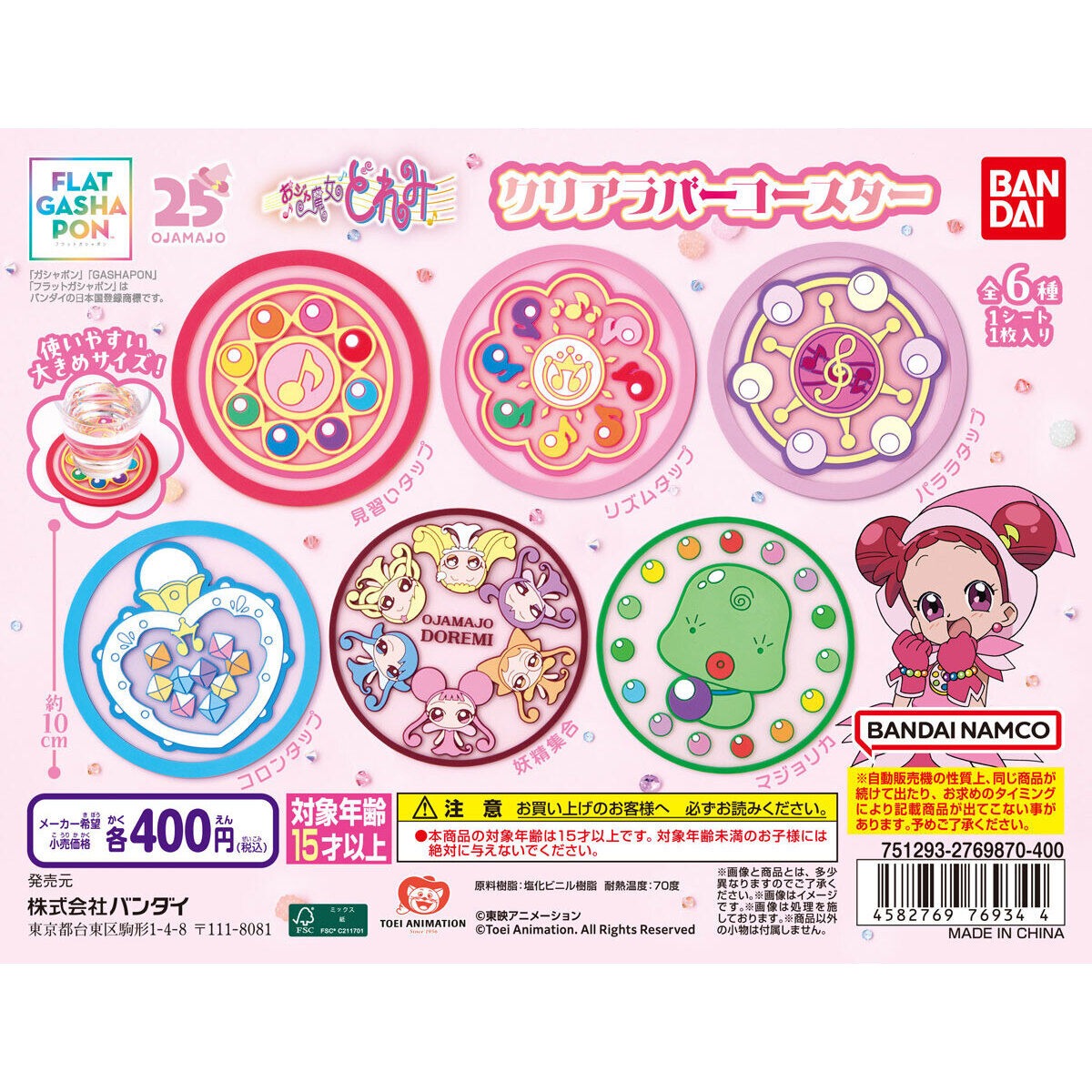 『おジャ魔女どれみ』のクリアラバーコースターが登場!10×10cmの使いやすい大きめサイズです。