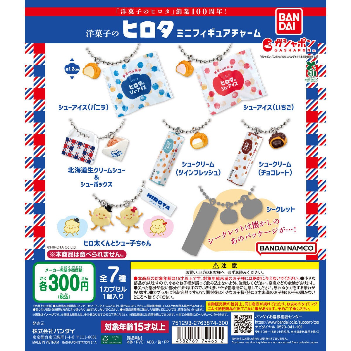 洋菓子のヒロタ ミニフィギュアチャームのガチャガチャはバンダイが出しています。