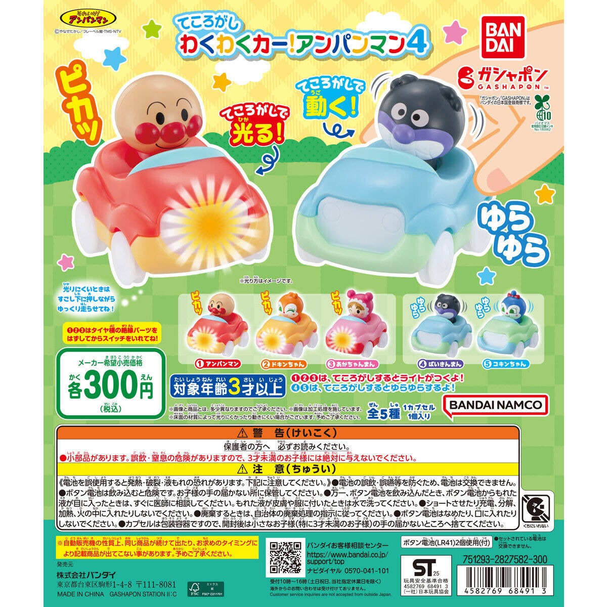 それいけ!アンパンマン てころがしわくわくカー!アンパンマン4は、バンダイのガシャポンから出されています。