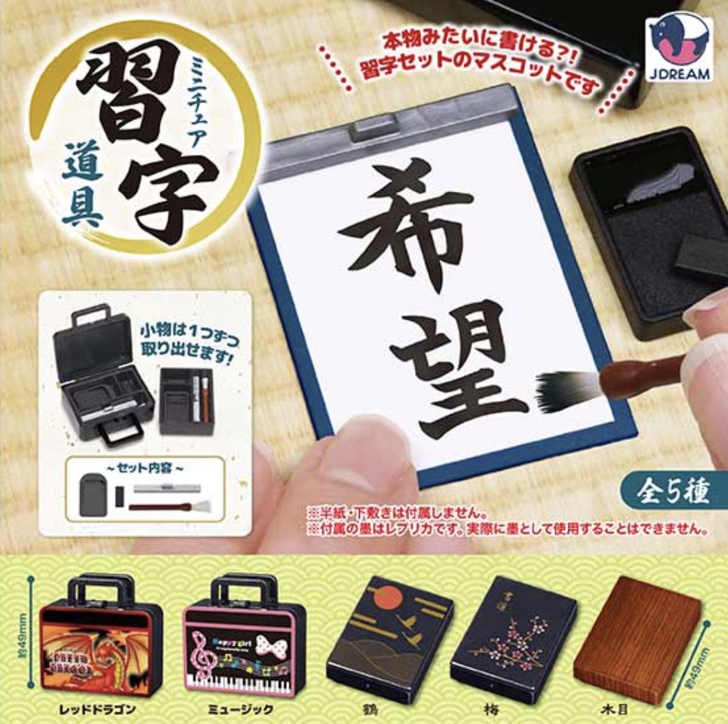 「ミニチュア習字道具」のガチャガチャは『ケンエレファント』が出しています。