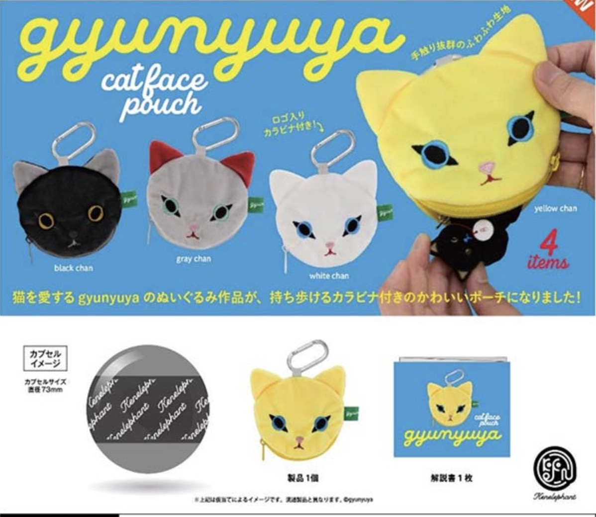 「gyunyuya キャットフェイスポーチ」のガチャガチャは『ケンエレファント』が出しています。