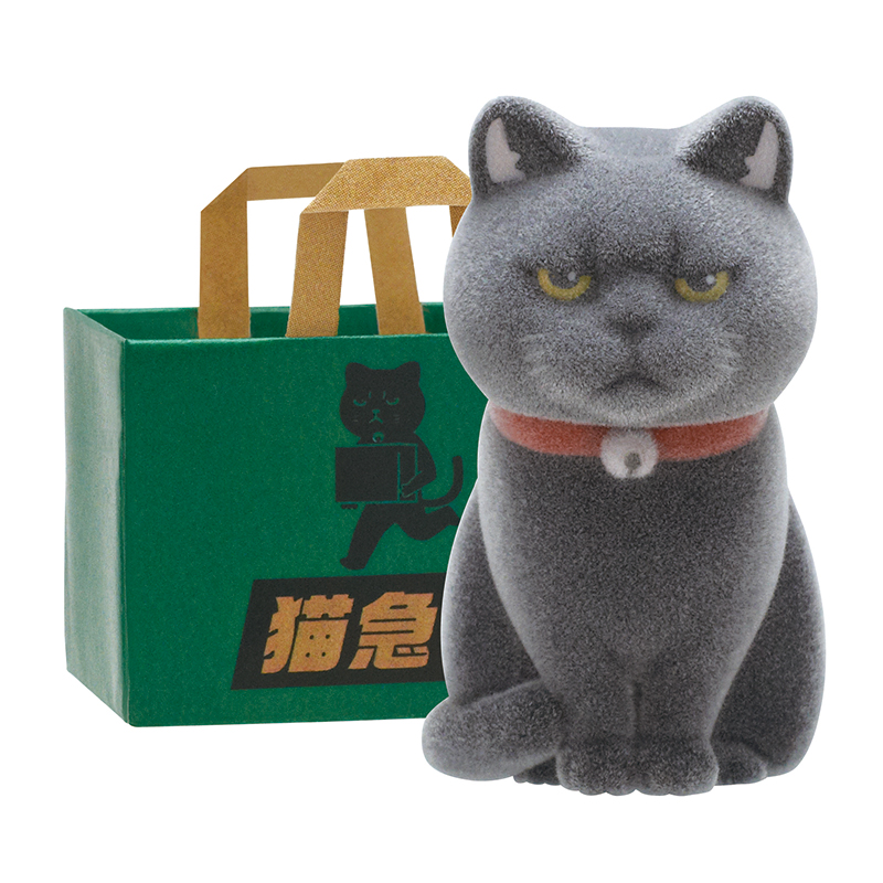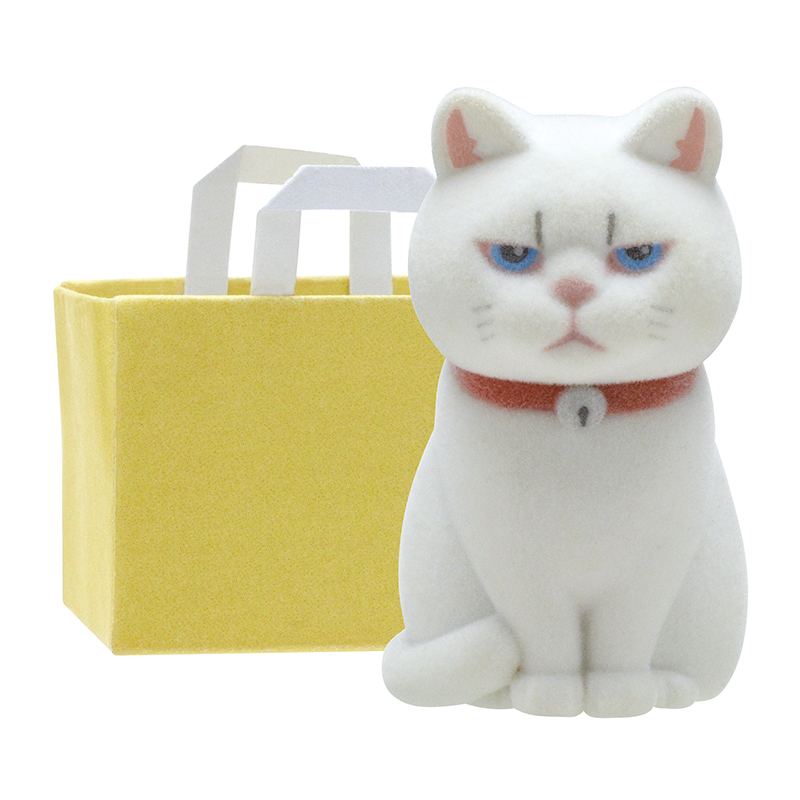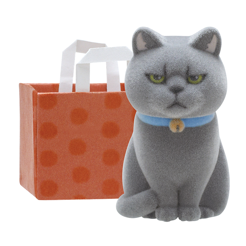 怒っているような、不機嫌そうな…けれど思わず「可愛い!」と言いたくなる、“ギャップ萌え”待ったなし︕「紙袋に入った猫」に、ふわふわ質感のフロッキーバージョンが登場しました。フロッキー素材ならではの柔らかな雰囲気と、毛並み感のある触り心地が魅力。どこかちょっと怖いような、でもよく見ると愛らしくて憎めない — そんな絶妙な表情もポイントです。