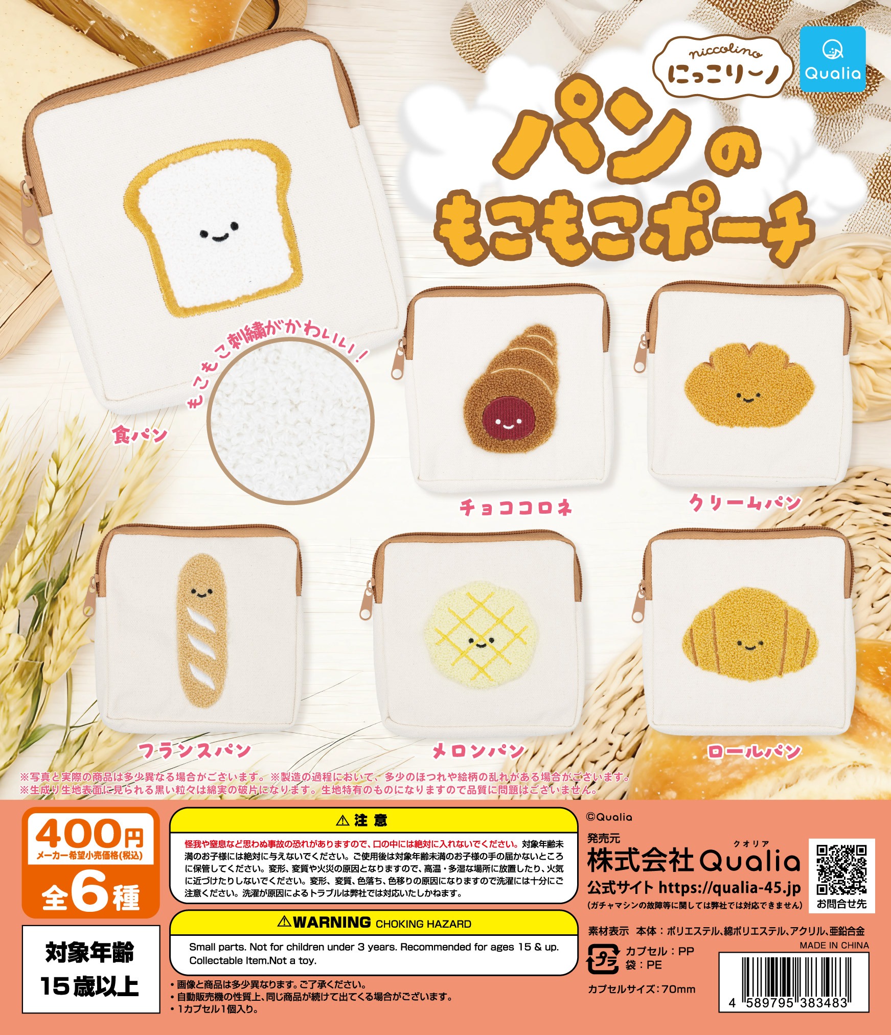にっこりーノ パンのもこもこポーチは、「Qualia(クオリア)」から出されています。