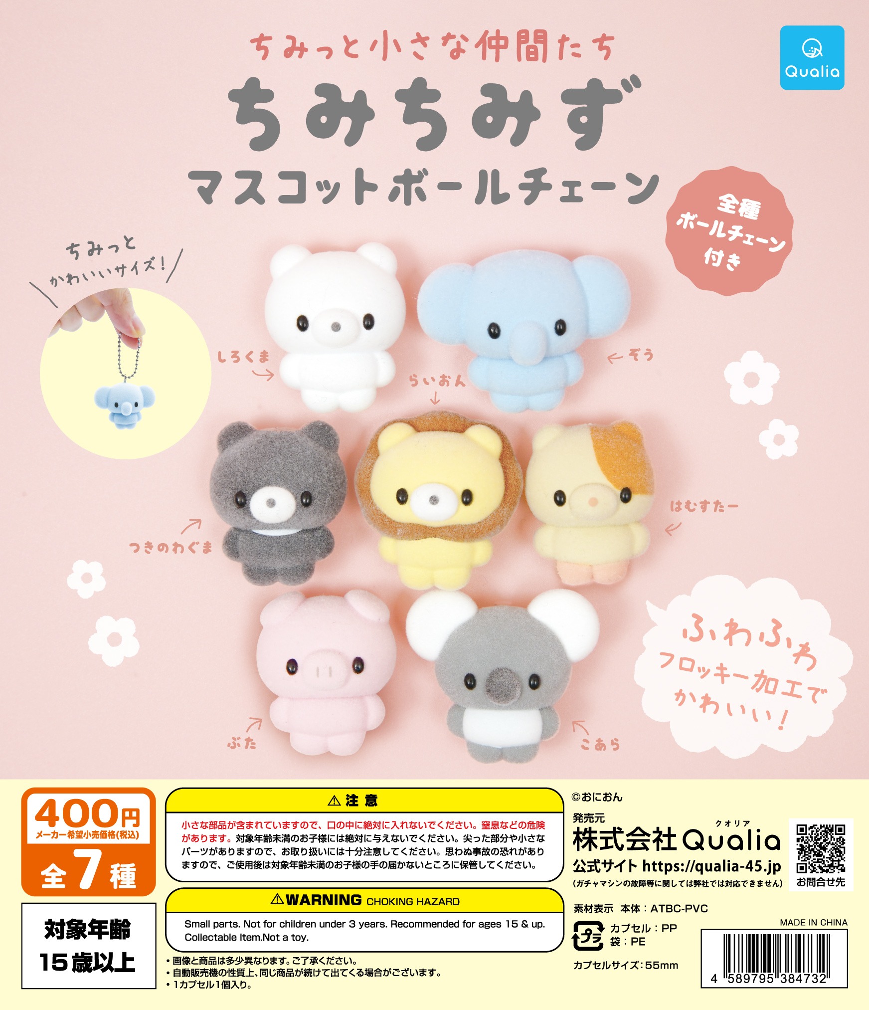 ちみっと小さな仲間たち ちみちみず マスコットボールチェーンは、「Qualia(クオリア)」から出されています。