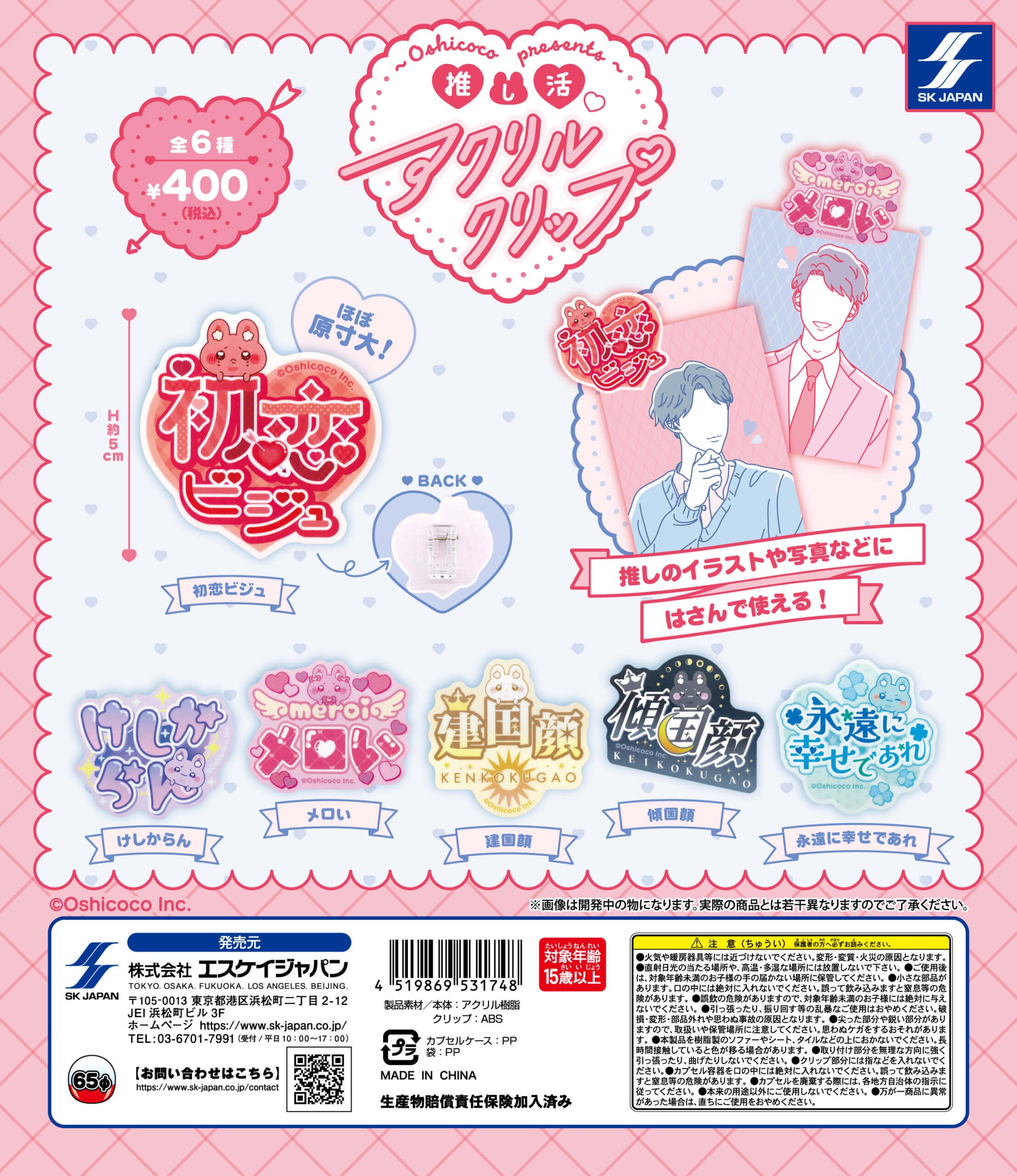 「Oshicoco presents 推し活アクリルクリップ」シリーズのガチャは「SKジャパン」が出しています。