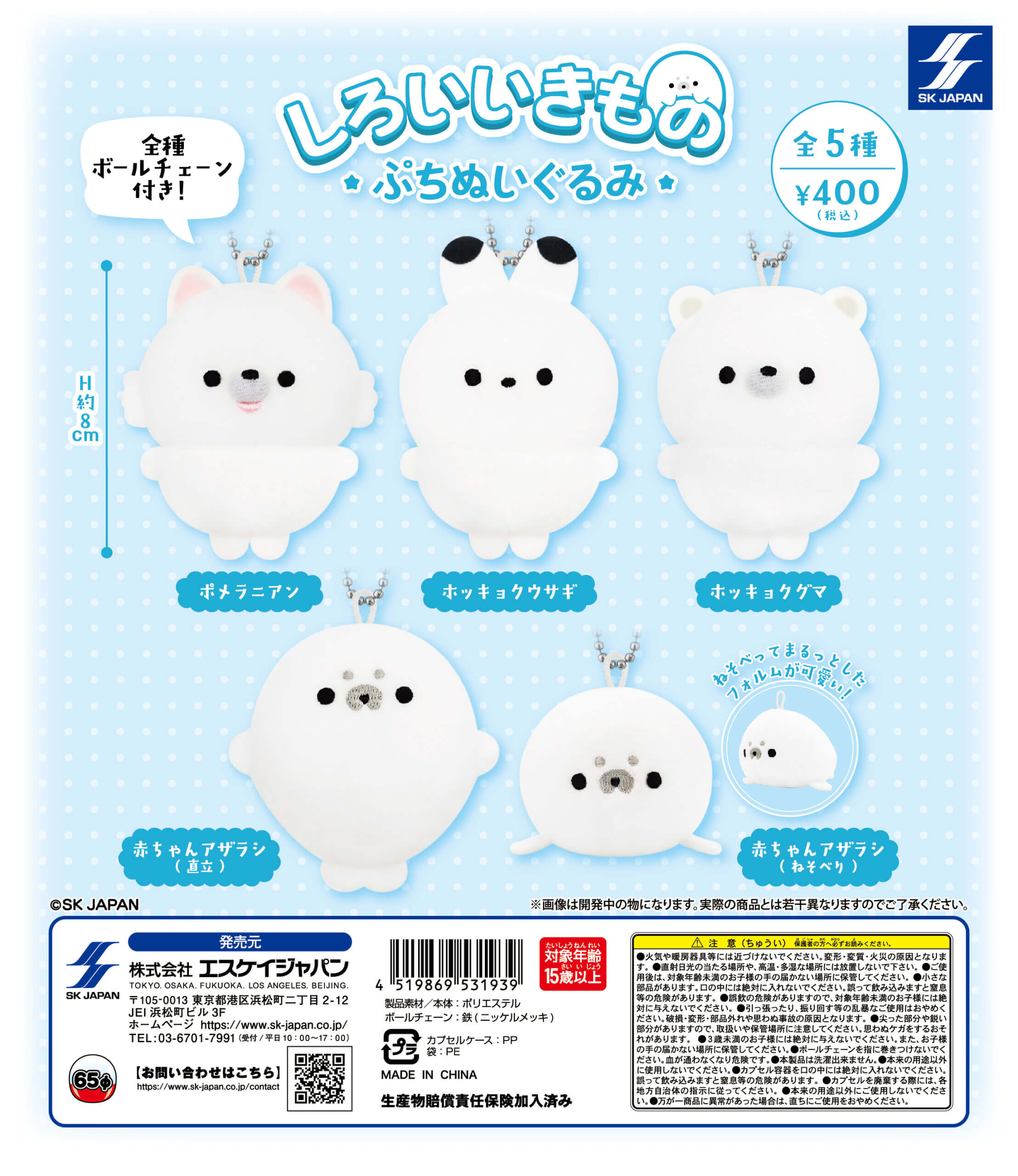 「しろいいきもの ぷちぬいぐるみ」シリーズのガチャは「SKジャパン」が出しています。