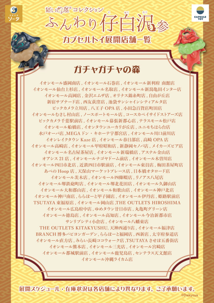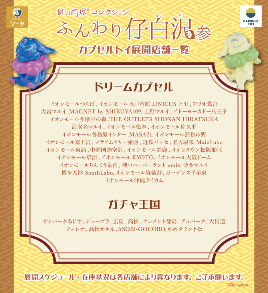 だいきょ屋コレクション ふんわり仔白沢 参のガチャガチャ取扱店舗一覧
