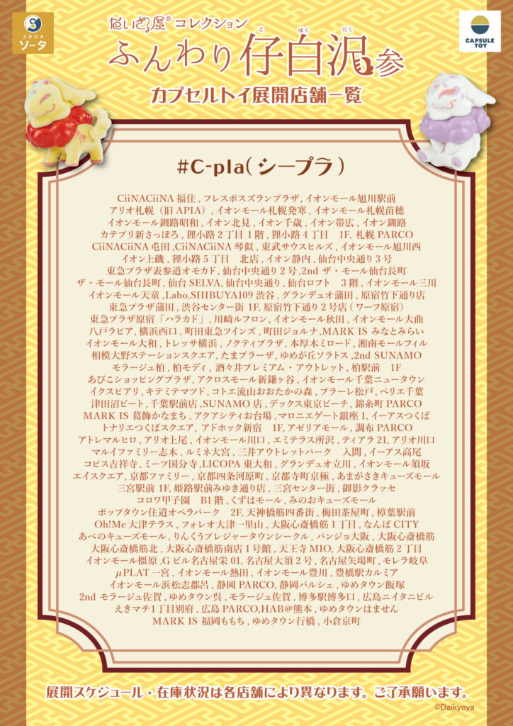 2025年11月販売の「だいきょ屋コレクション ふんわり仔白沢 参」の設置場所・取扱店舗を全国の都道府県別で紹介します。