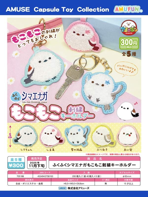 ふくふくシマエナガもこもこ刺繍キーホルダー