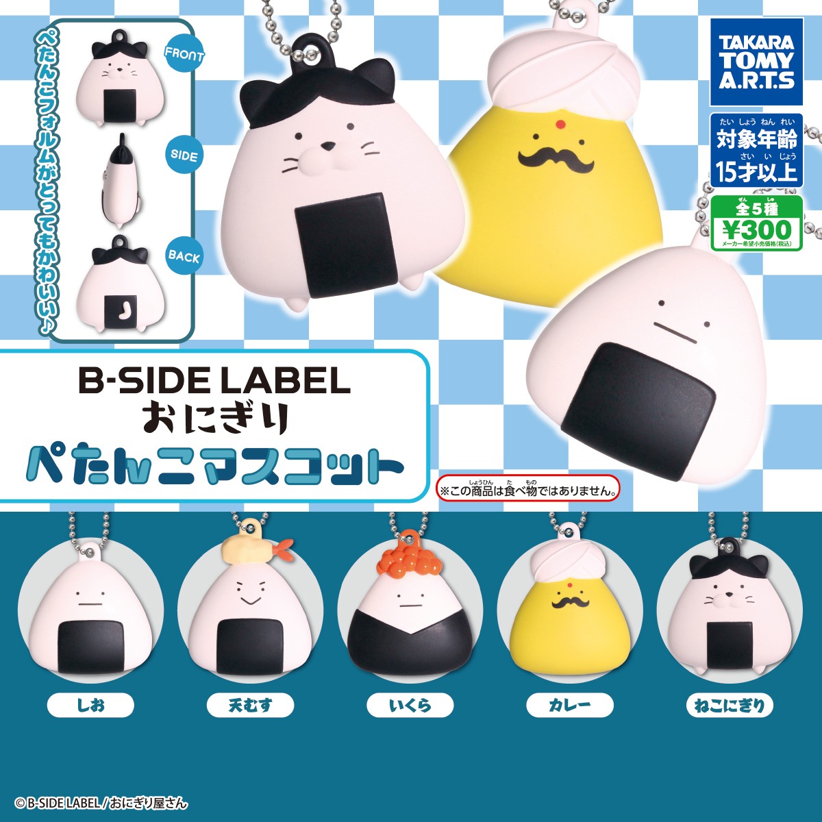 B-SIDE LABEL おにぎり ぺたんこマスコットは、タカラトミーアーツから出されています。