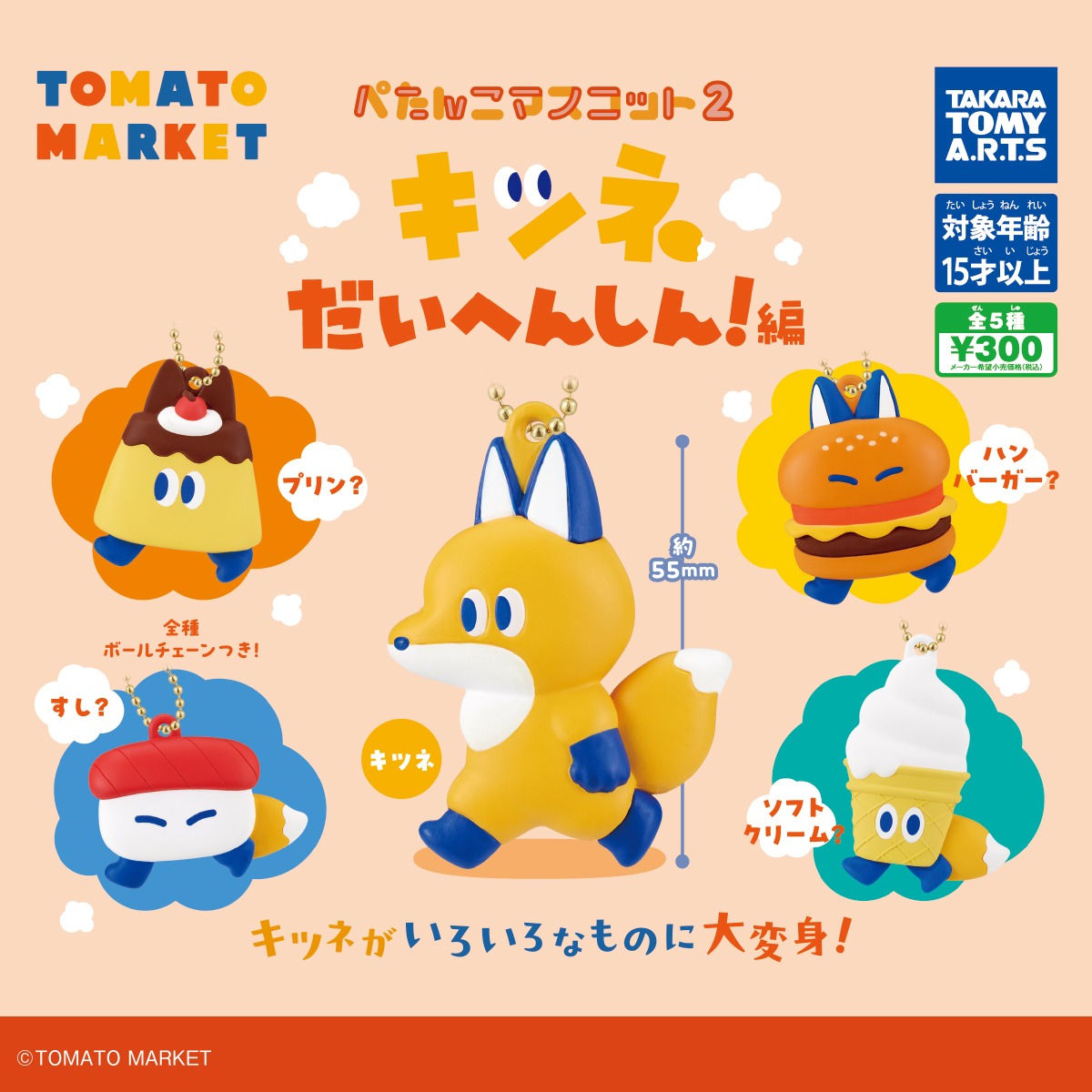 トマトマーケット ぺたんこマスコット2 ~キツネだいへんしん!編~は、タカラトミーアーツから出されています。
