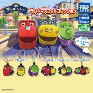 世界で放送されている鉄道CGアニメ『チャギントン』のラバーマスコット。「ウィルソン」「ブルースター」「ココ」にフォーカスし、単体アイテムには各キャラクターの決めゼリフが入っています。本体サイズは高さ約5cm。 ラインナップは 「ウィルソン」 「ブルースター」 「ココ」 「ウィルソン&ブルースター」 「ブルースター&ココ」 「ウィルソン&ココ&ブルースター」の全6種。