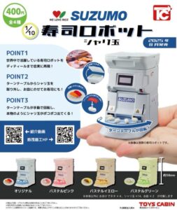 「1/10SUZUMO 寿司ロボット シャリ玉」のガチャガチャは『トイズキャビン』が出しています。