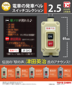 「電車の発車ベルスイッチコレクション2.5」のガチャガチャは『トイズキャビン』が出しています。