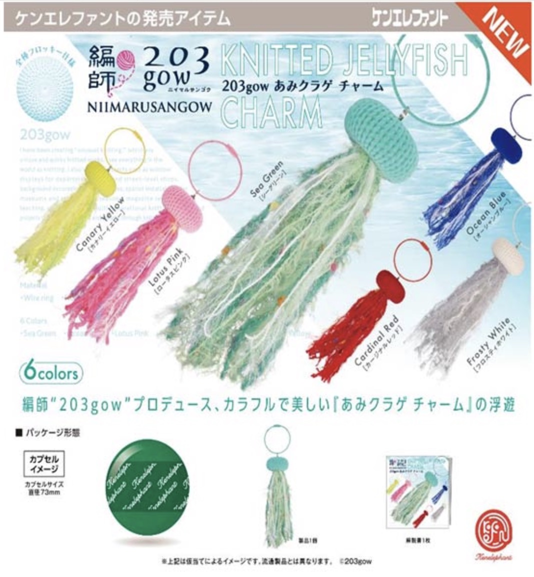 「203gow あみクラゲ チャーム」のガチャガチャは『ケンエレファント』が出しています。