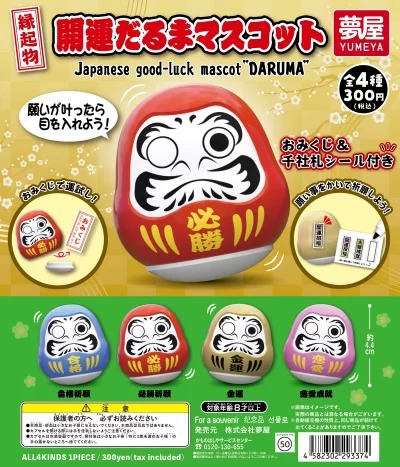 「縁起物 開運だるまマスコット」のガチャガチャは『夢屋』が出しています。